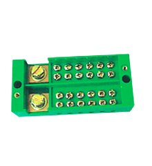 材料采用聚碳酸酯阻燃, 導電構件采用條銅塊分線孔雙螺釘壓接技術,保證連接導線可靠,額定交流電壓500V,分戶連接截面 4~10mm2 ,總線截面10~50mm2 ,適用于住宅使用的電表箱分線連接,也適用小型單相計量的經營生產場所的開關板的表箱連接。